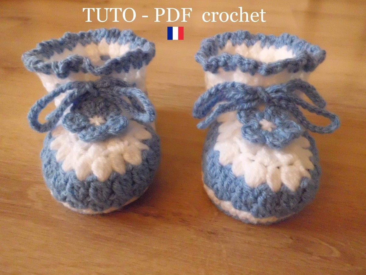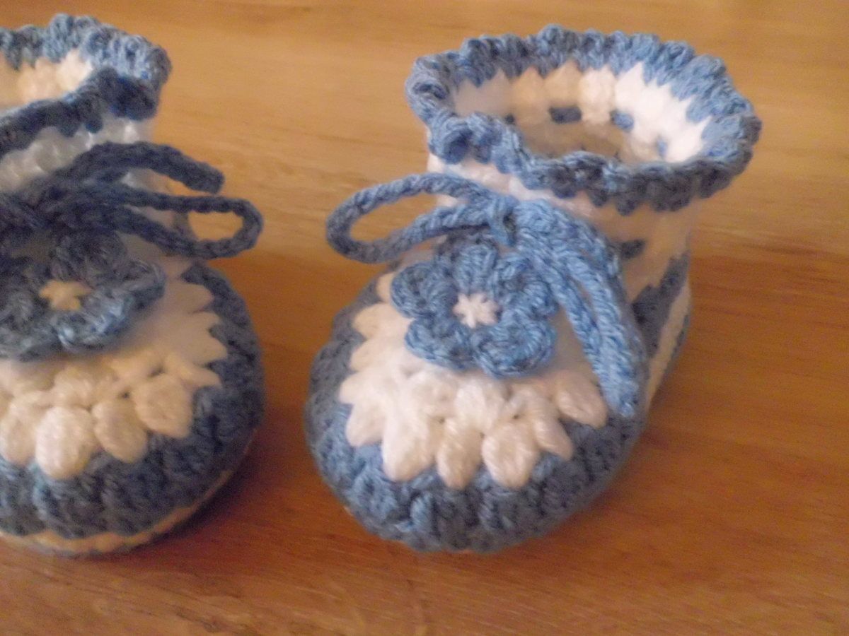 Voici mes adorables CHAUSSONS pour bébé , aux 2 couleurs , orné d'une lanière coulissante et d'une fleur , de 3 à 12 mois ! Ils sont faciles à réaliser grâce à mes explications claires !