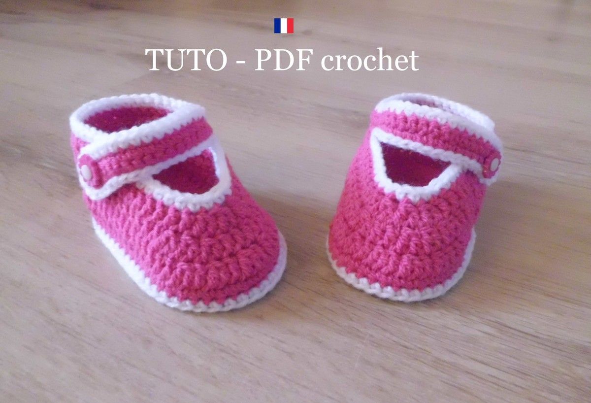 Voici mes charmants chaussons pour bébé en rose fuchsia et blanc , de 3 à 12 mois , fermé par une lanière et un bouton ! Ils sont faciles à réaliser grâce à mes explications claires !