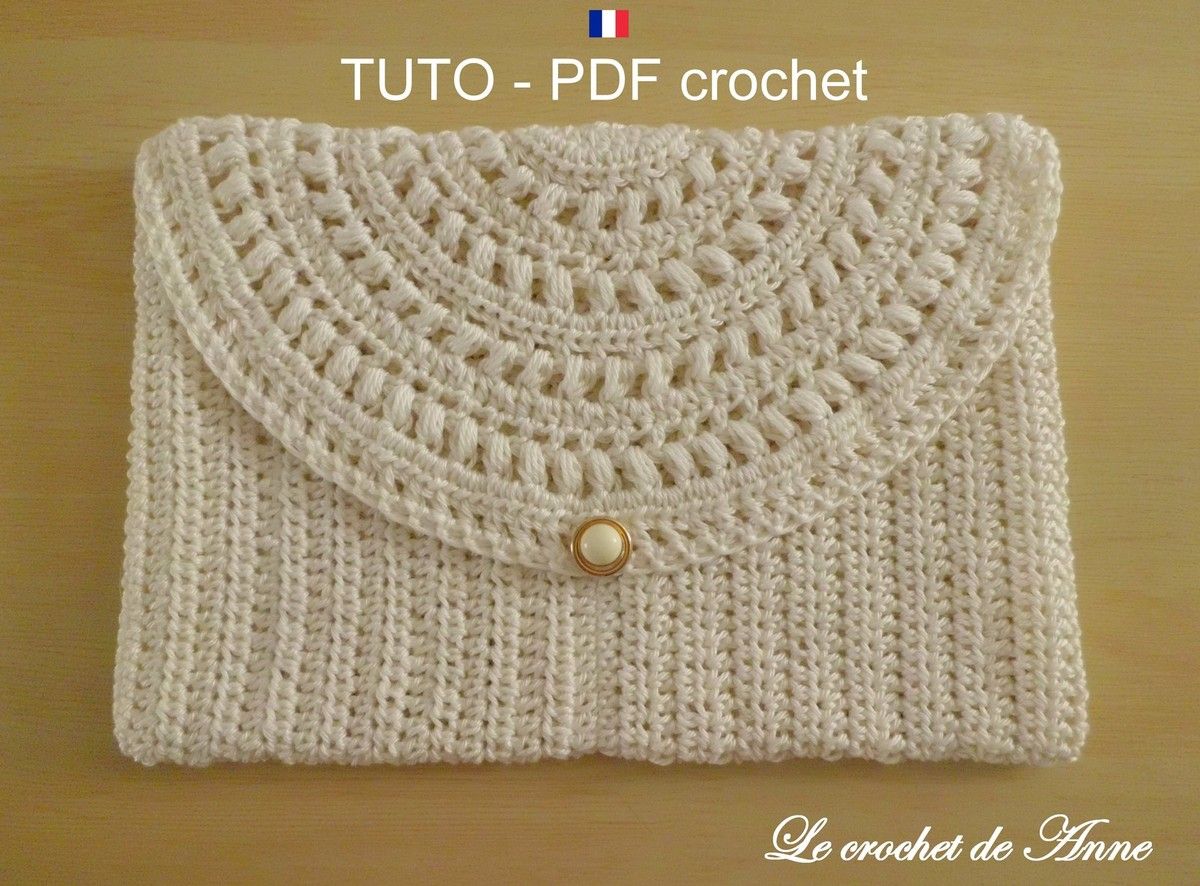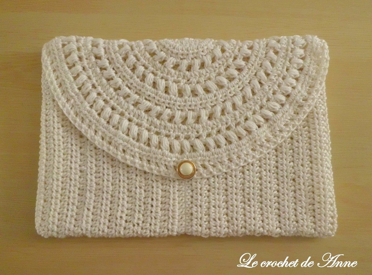 Voici ma jolie pochette en beige écru , ornée d'un joli rabat dentelle , fermée par un bouton , en 100 % coton mercerisé , grâce à mes explications claires ! Pour une soirée , un mariage , ou pour ranger son maquillage ou tout autre chose !